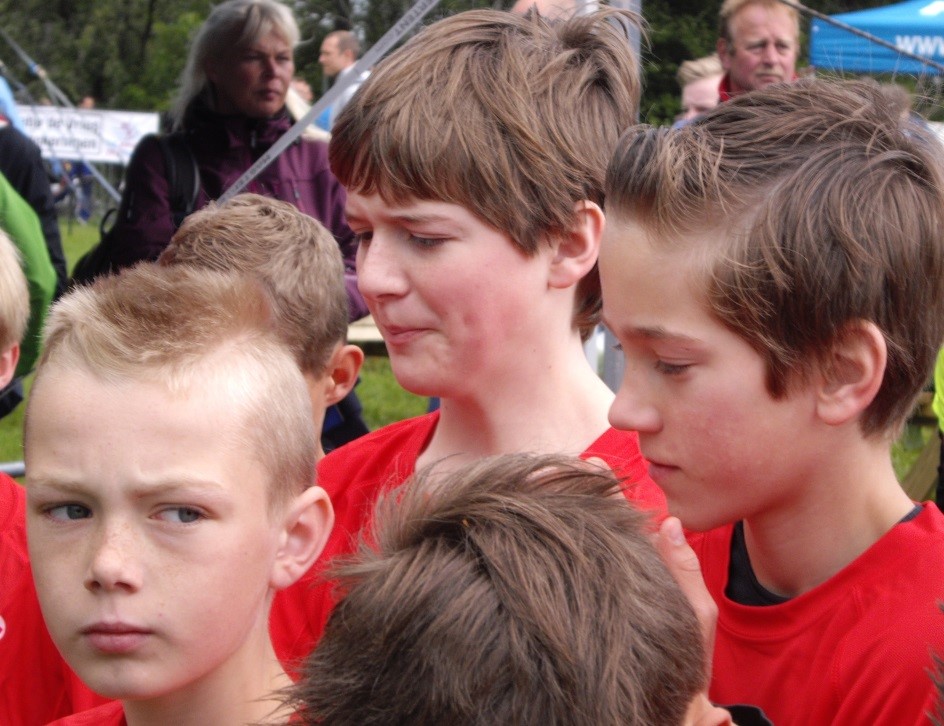 Sam (staande tussen Max en Jort) is een beetje gespannen bij de start |